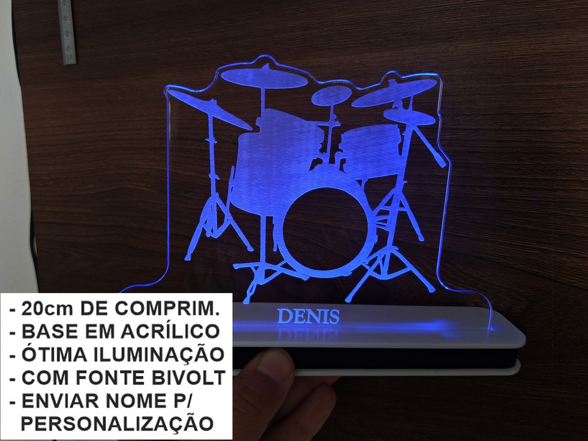 Luminária de LED Instrumentos Musicais – Bateria 02 – com Nome Personalizado